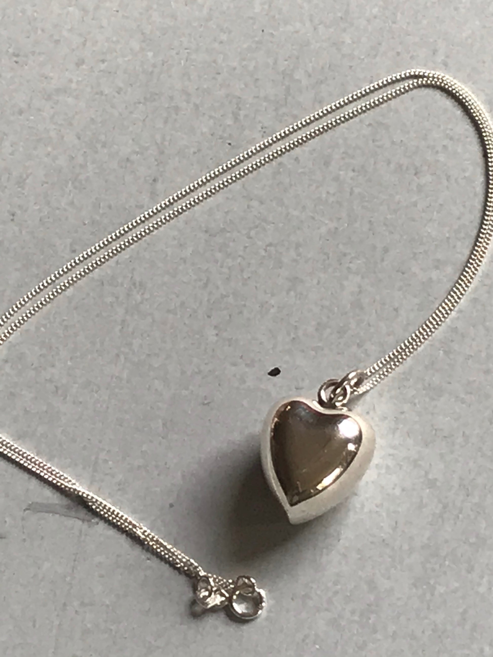 Heart measures 2.5cm diameter (and 1.5 cm high) with a 26 cm drop.