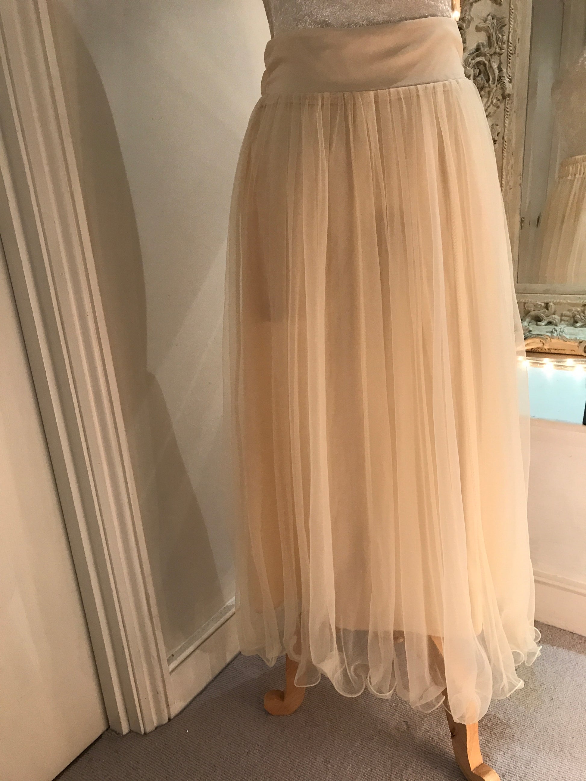 Cream Princess Pleated Long Skirt