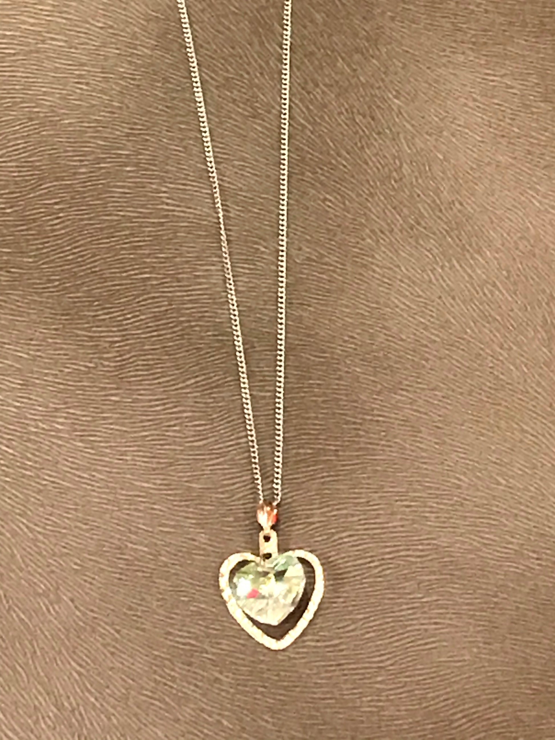 Austrian crystal with glints of the sea surrounded by real gold heart and strung on a gold chain.