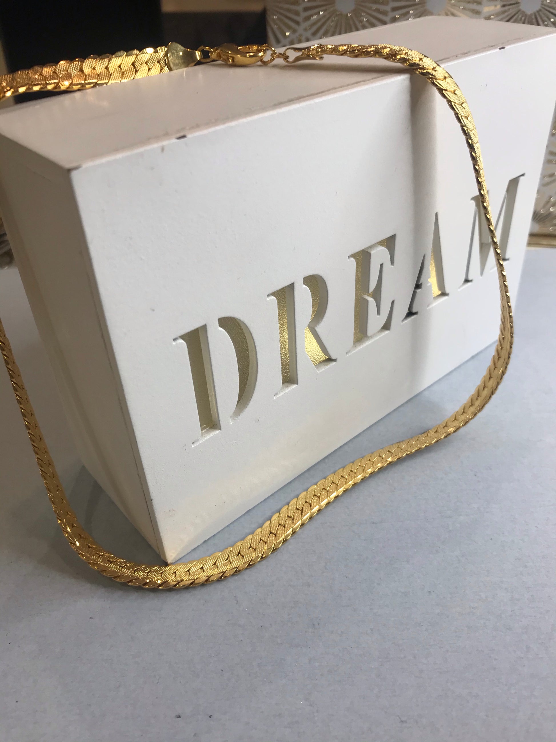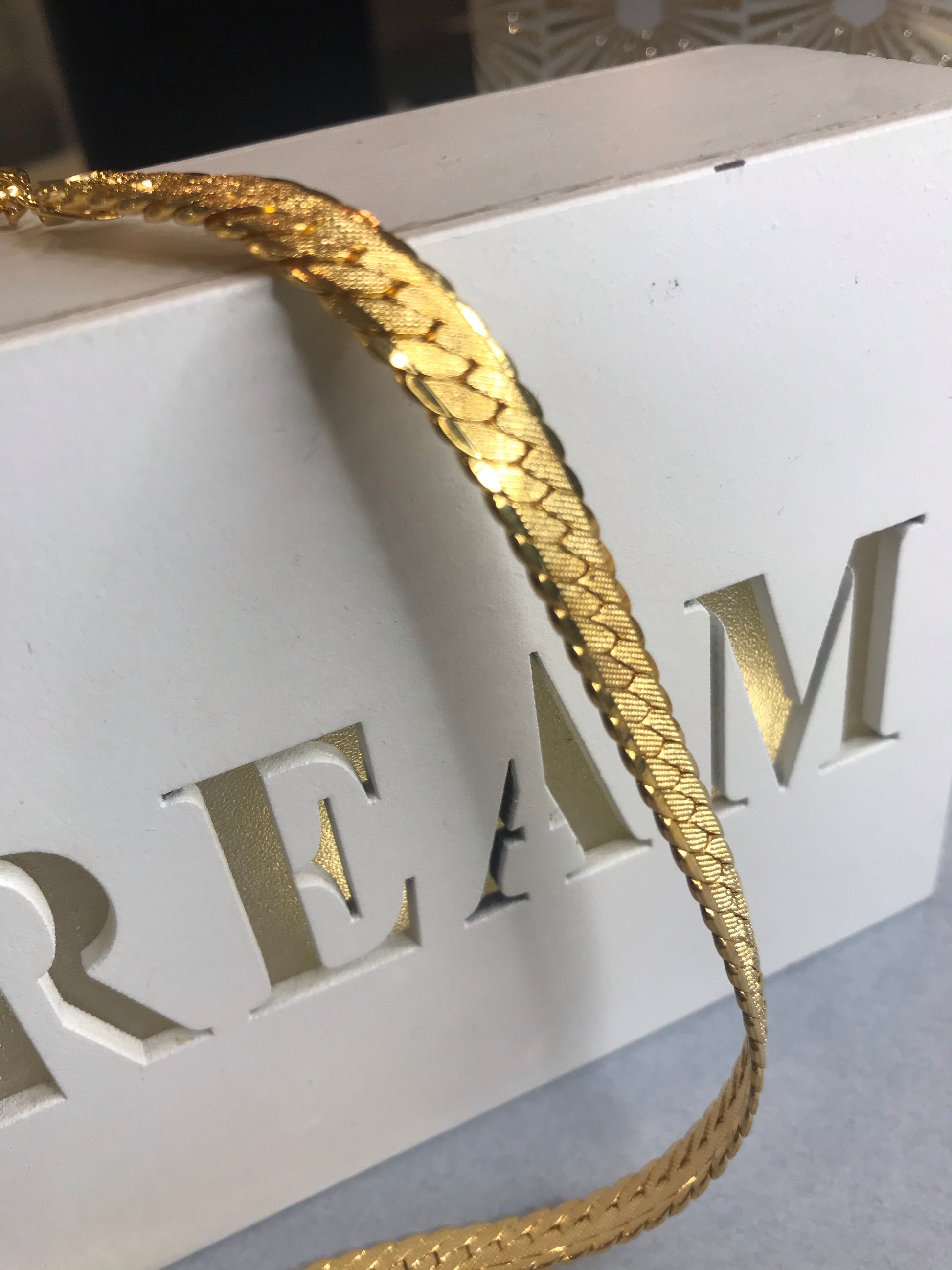 This necklace oozes glamour, sexiness, and power. A stunning gold-plated piece in fishtail pattern which falls on the most beautiful area of a woman's neck, just below the collarbone.