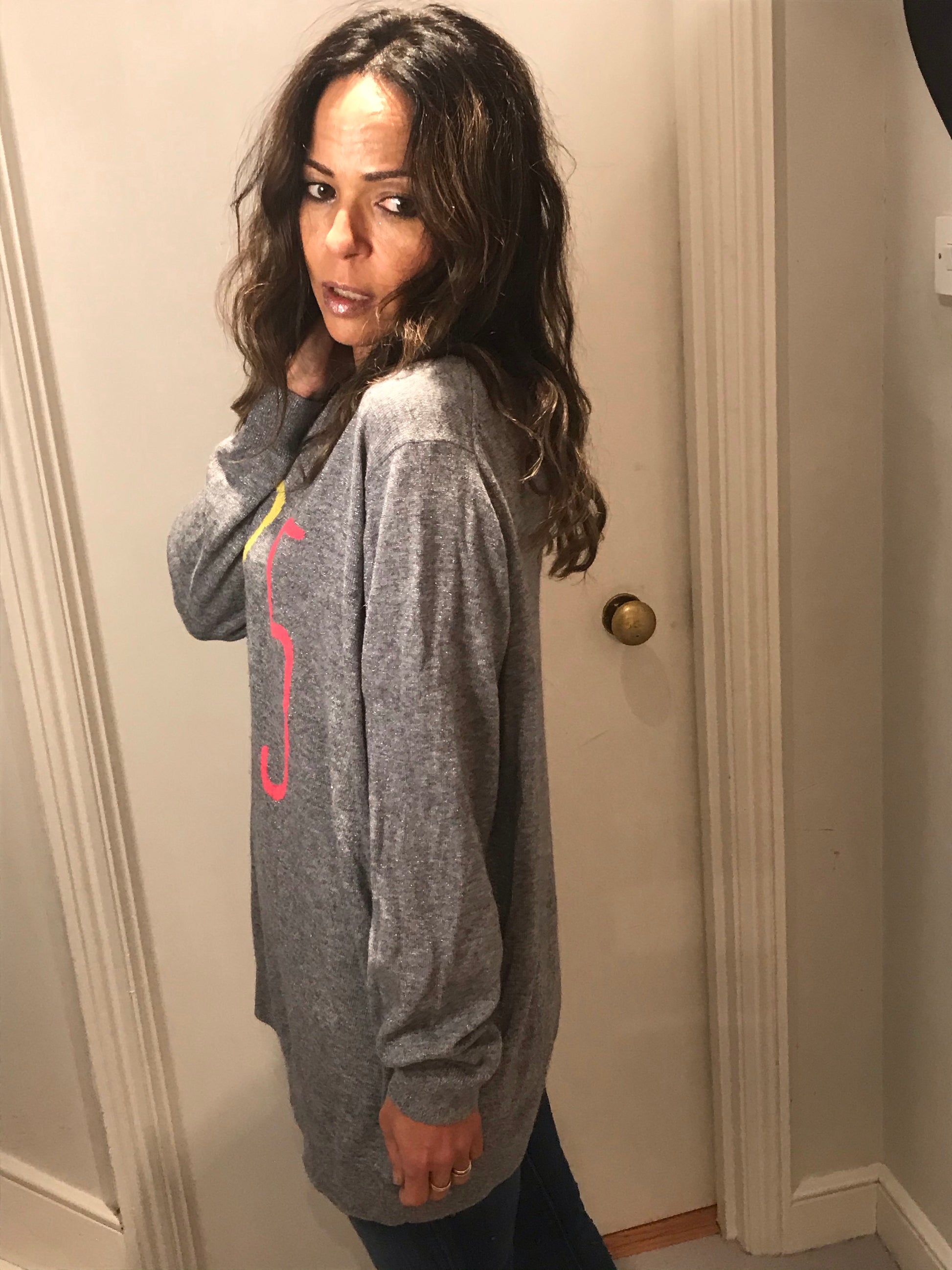 Seriously this piece rocks because literally anyone will fit it, in some form or another, and the giant neon numbering elevated it from just an oversized grey jumper (yawn) into something waaaay more interesting.