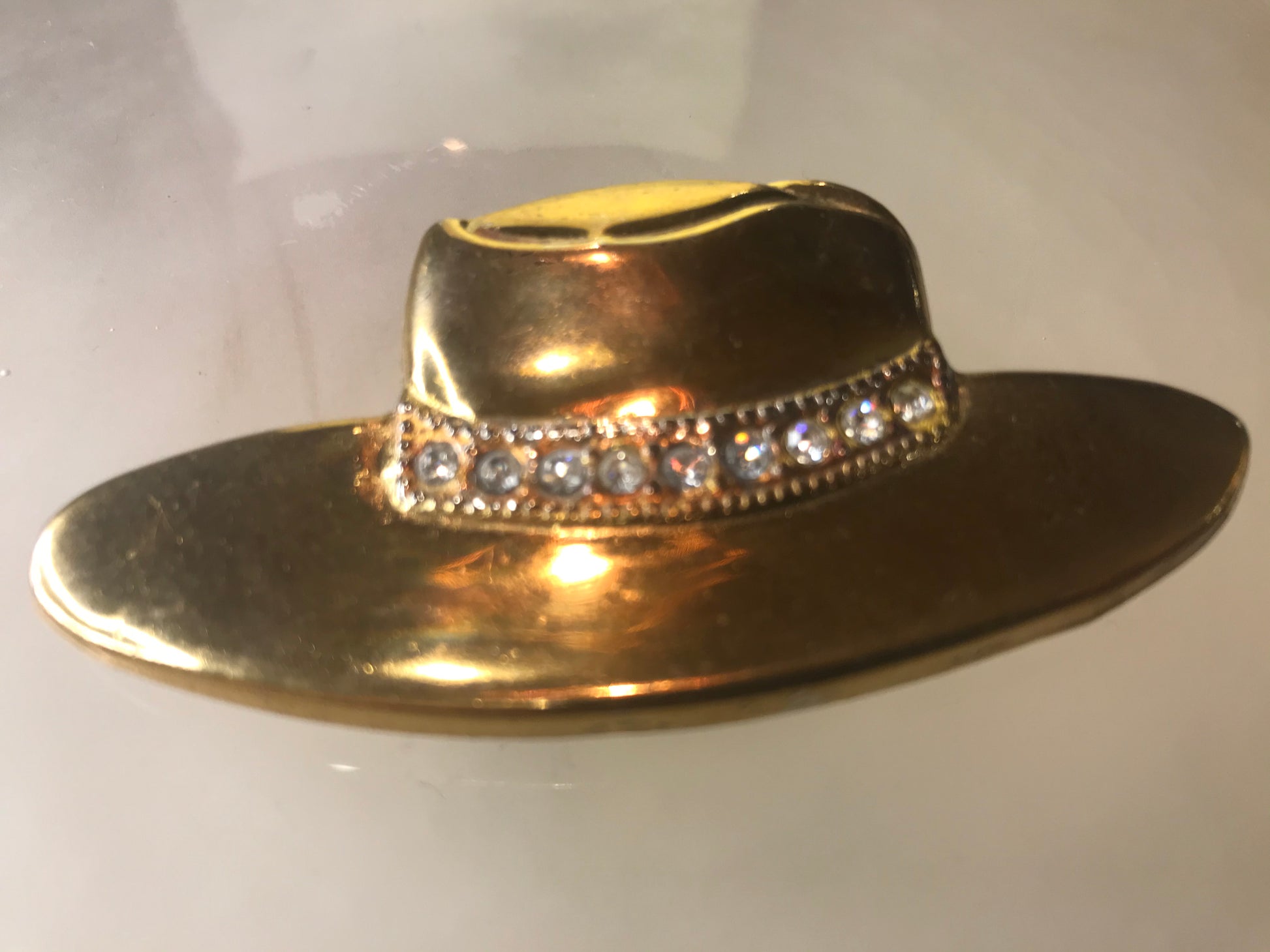 Vintage Gold-Plated Simulated Diamonds Brooch in fabulous COWBOY HAT.