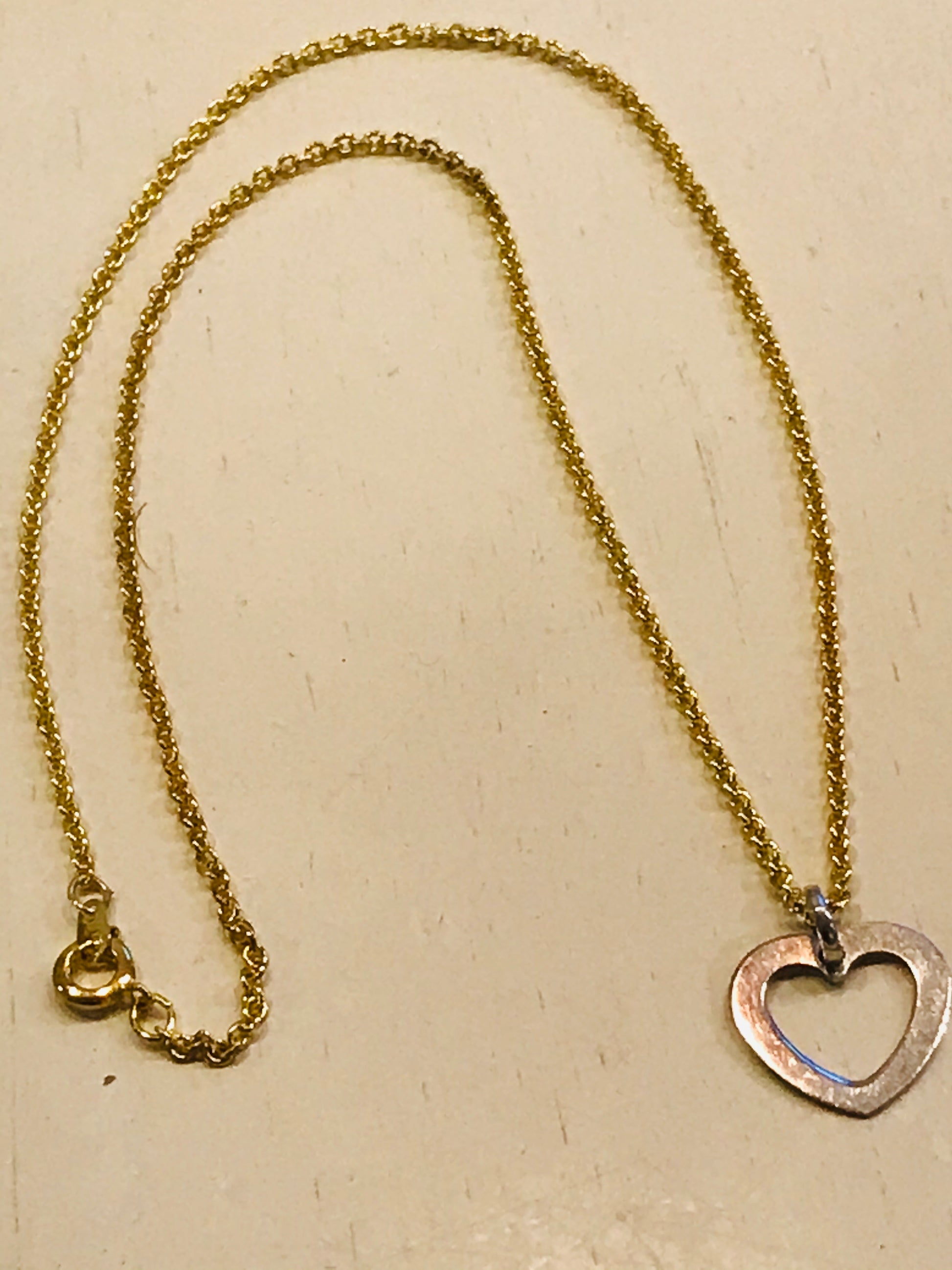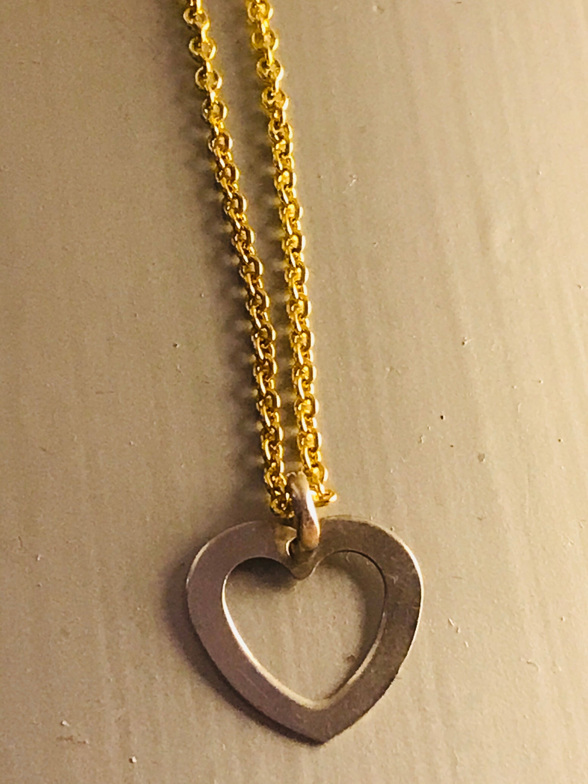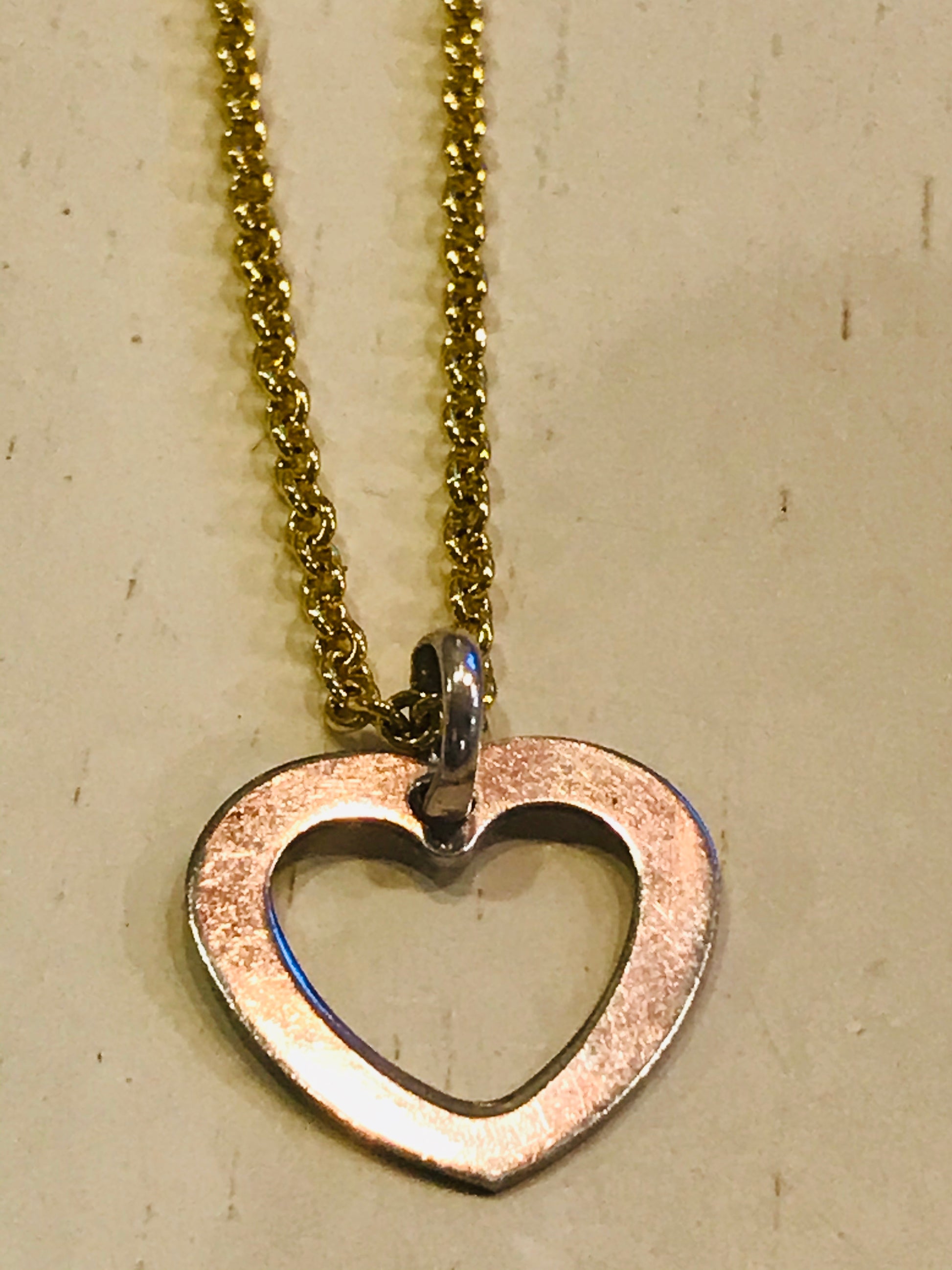 A one-of-a-kind ORIGINAL...fashioned by pairing an exquisite silver heart with a darling vintage gold chain.