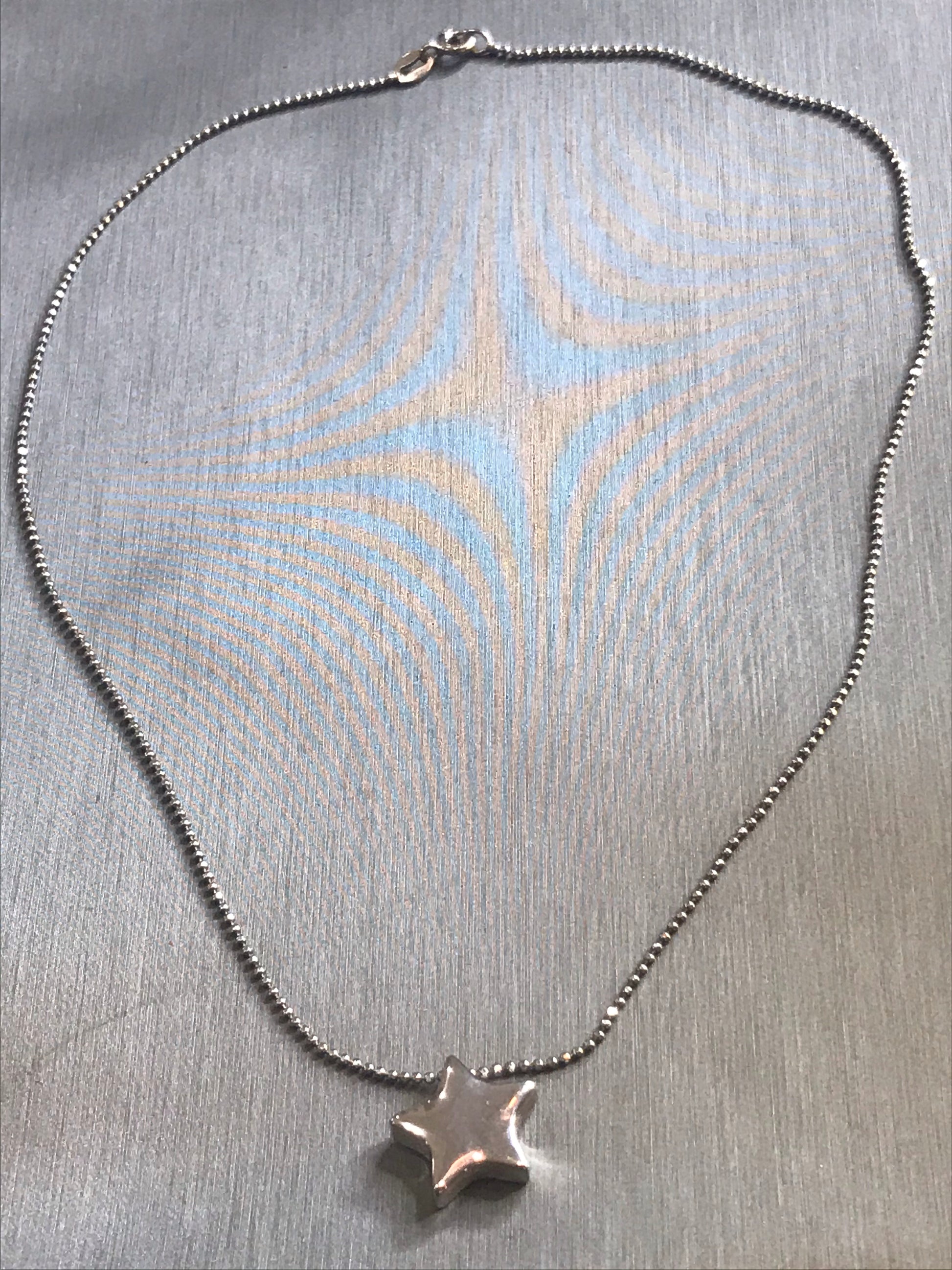 A solid silver star strung on a glittering bevelled silver chain...simply stunning piece for that someone who was made to SPARKLE